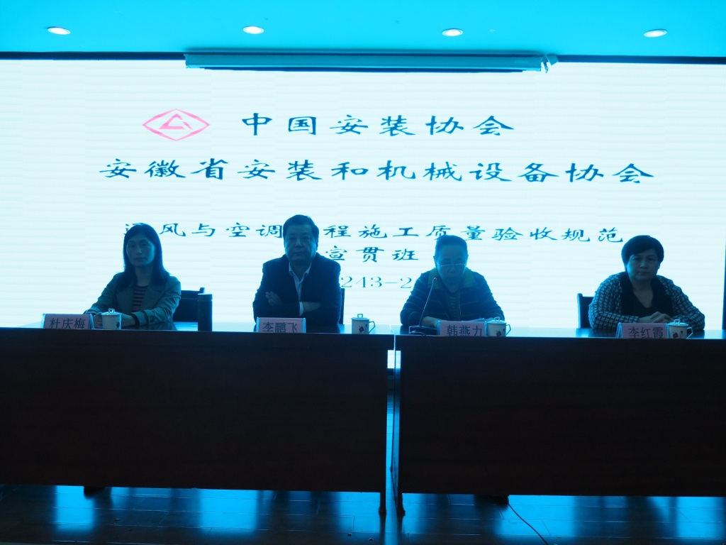 2017年11月10日,由中國安裝協(xié)會主辦,安徽省安裝和機械設備協(xié)會承辦的《通風與空調(diào)工程施工質(zhì)量驗收規(guī)范》(GB50243-2016)宣貫班在安徽合肥成功舉辦。這是中國安裝協(xié)會與安徽省安裝和機械設備協(xié)會首次合作開展培訓。來自北京、山西、江蘇和我會會員單位負責人、技術負責人、工程師等相關人員200多人參會。安徽省安裝和機械設備協(xié)會副會長李鵬飛作了開班動員,中國安裝協(xié)會培訓班主任韓燕力提出基本要求。