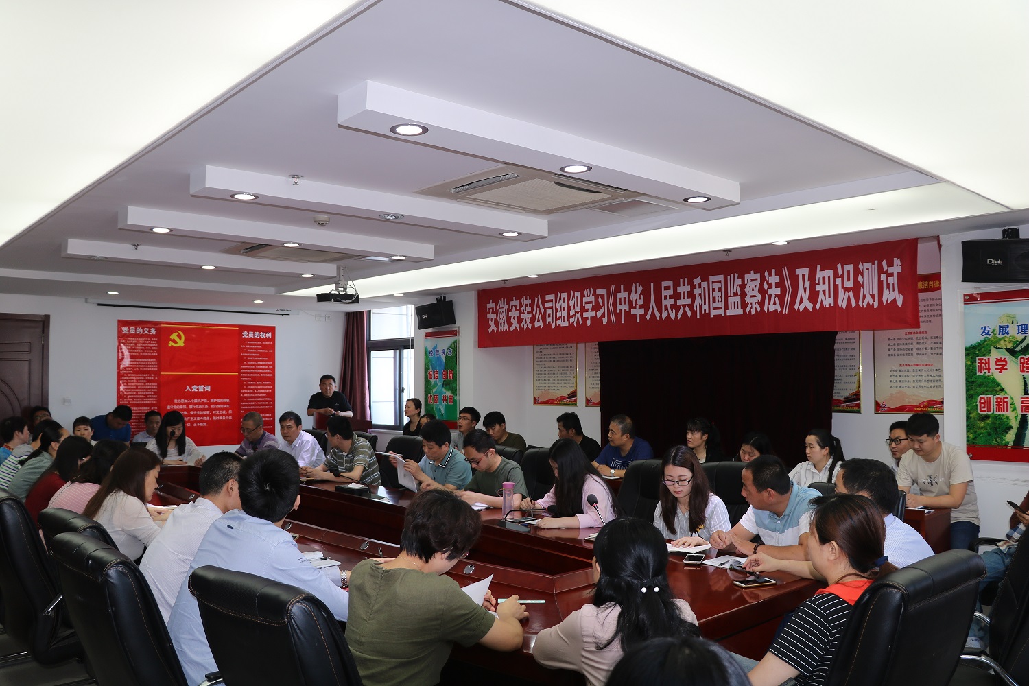 隨后,為了檢驗學習效果,當場進行了《監(jiān)察法》知識測試,考試過程中,全體參考人員嚴守考場紀律,態(tài)度端正、認真答卷,考場秩序井然有序,確保了考試的公正嚴肅性。此次測試題型設(shè)置上為單選題和簡答題,卷面滿分100分,通過此次知識測試,使機關(guān)全體干部職工對自身所擔負的責任和應(yīng)盡的義務(wù)有了更加全面的認識,增強了依法監(jiān)督意識,達到了以考促考的目的,為推動國有企業(yè)黨風廉政建設(shè)和反腐敗工作營造良好氛圍。
