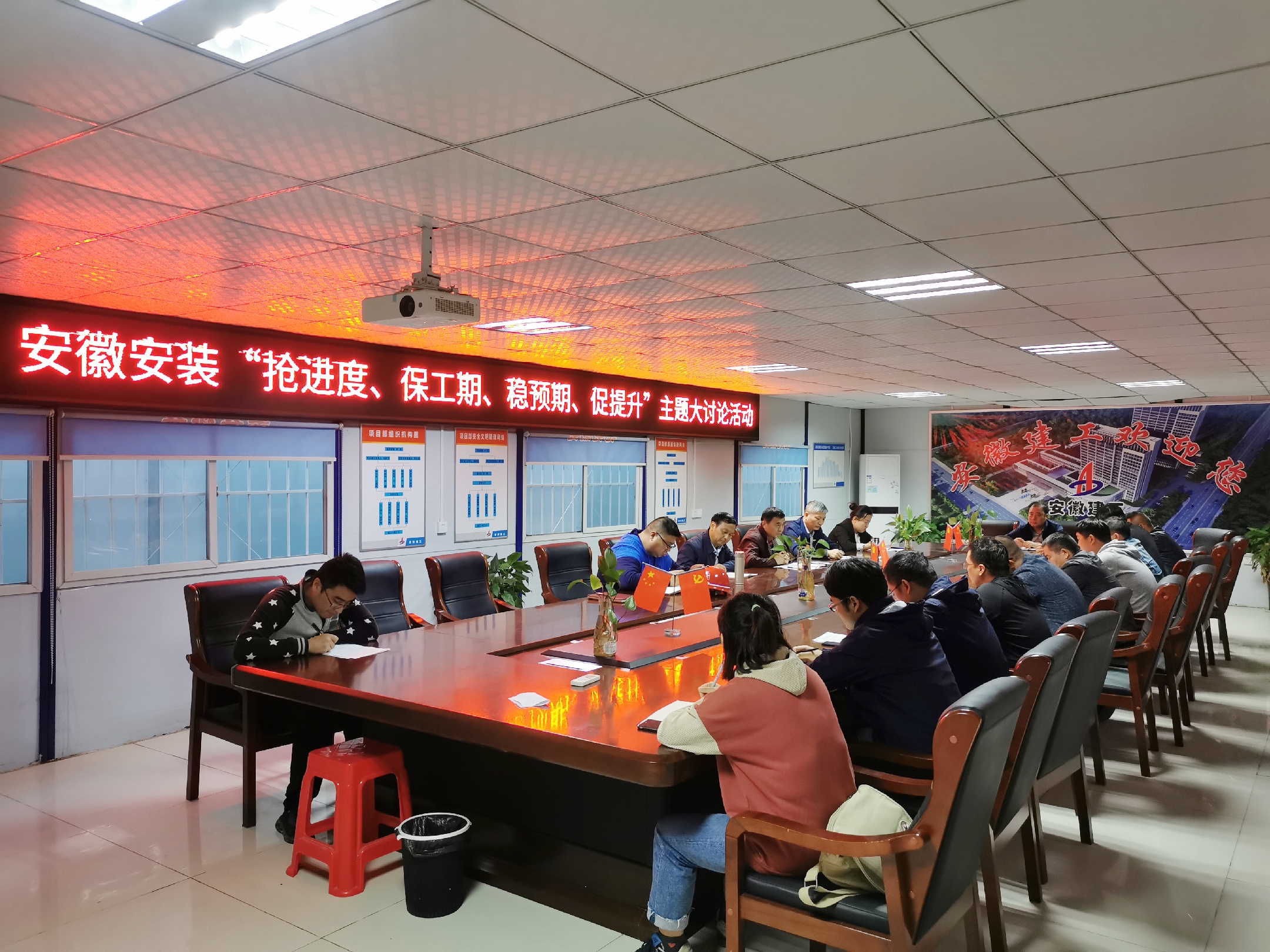 為認(rèn)真貫徹集團(tuán)公司“搶進(jìn)度、保工期、穩(wěn)預(yù)期、促提升”勞動(dòng)競(jìng)賽活動(dòng)精神,10月10日下午,安徽安裝公司圍繞“不能按時(shí)交工為恥辱”的履約意識(shí),在阜陽(yáng)潁東區(qū)中醫(yī)院項(xiàng)目部會(huì)議室,組織開展“搶進(jìn)度、保工期、穩(wěn)預(yù)期、促提升”主題大討論活動(dòng)。公司副總經(jīng)理高飛,紀(jì)委書記、工會(huì)主席李寬旭,總工程師吳繼成,公司相關(guān)部門負(fù)責(zé)人,房建分公司領(lǐng)導(dǎo)班子成員,項(xiàng)目經(jīng)理、技術(shù)負(fù)責(zé)人等共計(jì)20余人參加會(huì)議,會(huì)議由李寬旭主持。