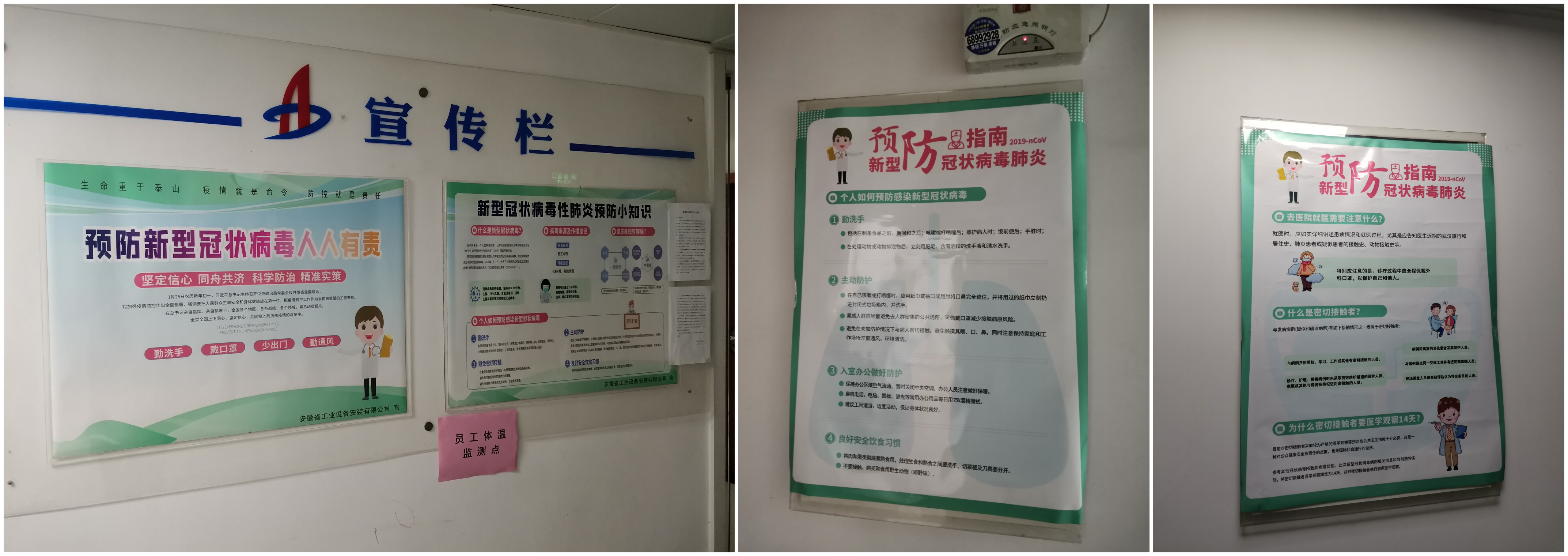 1月27日(大年初三),公司下發(fā)《安徽安裝公司關(guān)于做好新型冠狀病毒肺炎疫情工作的防控措施》,全體員工每日在釘釘日志專項(xiàng)報(bào)告當(dāng)日去向及身體狀況,各分公司、各部門認(rèn)真做好登記,確保信息及時(shí)準(zhǔn)確,時(shí)刻密切關(guān)注員工的身體健康狀況。
