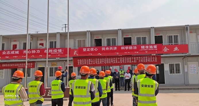 為確保年度各項目目標任務(wù)順利完成,貫徹落實集團和安裝公司兩級職代會及疫情防控、復工復產(chǎn)工作推進會精神,3月21日上午,安徽安裝召開蕪湖宇培裝配生產(chǎn)基地項目“大干90天”勞動競賽動員會。公司黨委書記、董事長胡六中,紀委書記、工會主席李寬旭,合肥分公司領(lǐng)導班子成員、項目管理人員和施工班組參加了競賽動員會。