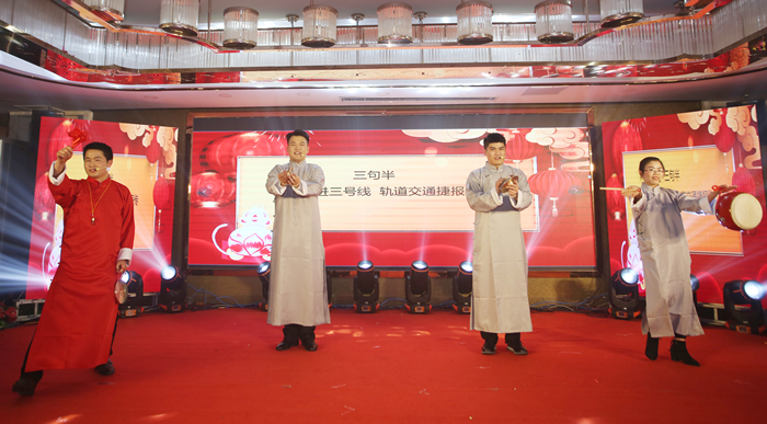 整場聯(lián)歡會由歌伴舞、朗誦、合唱、小品、樂器演奏、三句半、黃梅戲、音詩畫等16個節(jié)目組成,均為職工自編自導(dǎo)自演。在歌伴舞《今天是你的生日中》中,聯(lián)歡會正式拉開序幕?!妒“操潯芬愿木幇纥S梅戲劇的形式為公司送上美好的祝愿;配樂詩朗誦《春風(fēng)浩蕩啟新程,揚帆起航再出發(fā)》展現(xiàn)了安徽安裝人團(tuán)結(jié)奮進(jìn),一往無前的精神風(fēng)貌;三句半《拼搏奮進(jìn)三號線,軌道交通捷報傳》以幽默的方式講述了軌道交通3號線合肥大劇院站項目部上的故事;音詩畫《奮斗是青春最亮麗的底色》講述了新疆烏蘇管廊、中水回用項目榮獲“安徽省工人先鋒號”背后的故事,向全體奮戰(zhàn)在項目施工一線的安徽安裝人致敬...歡快的旋律,優(yōu)美的舞姿,幽默的小品,豪邁的朗誦將現(xiàn)場的氣氛推向高潮,贏得了現(xiàn)場觀眾的歡呼喝彩與陣陣掌聲。
