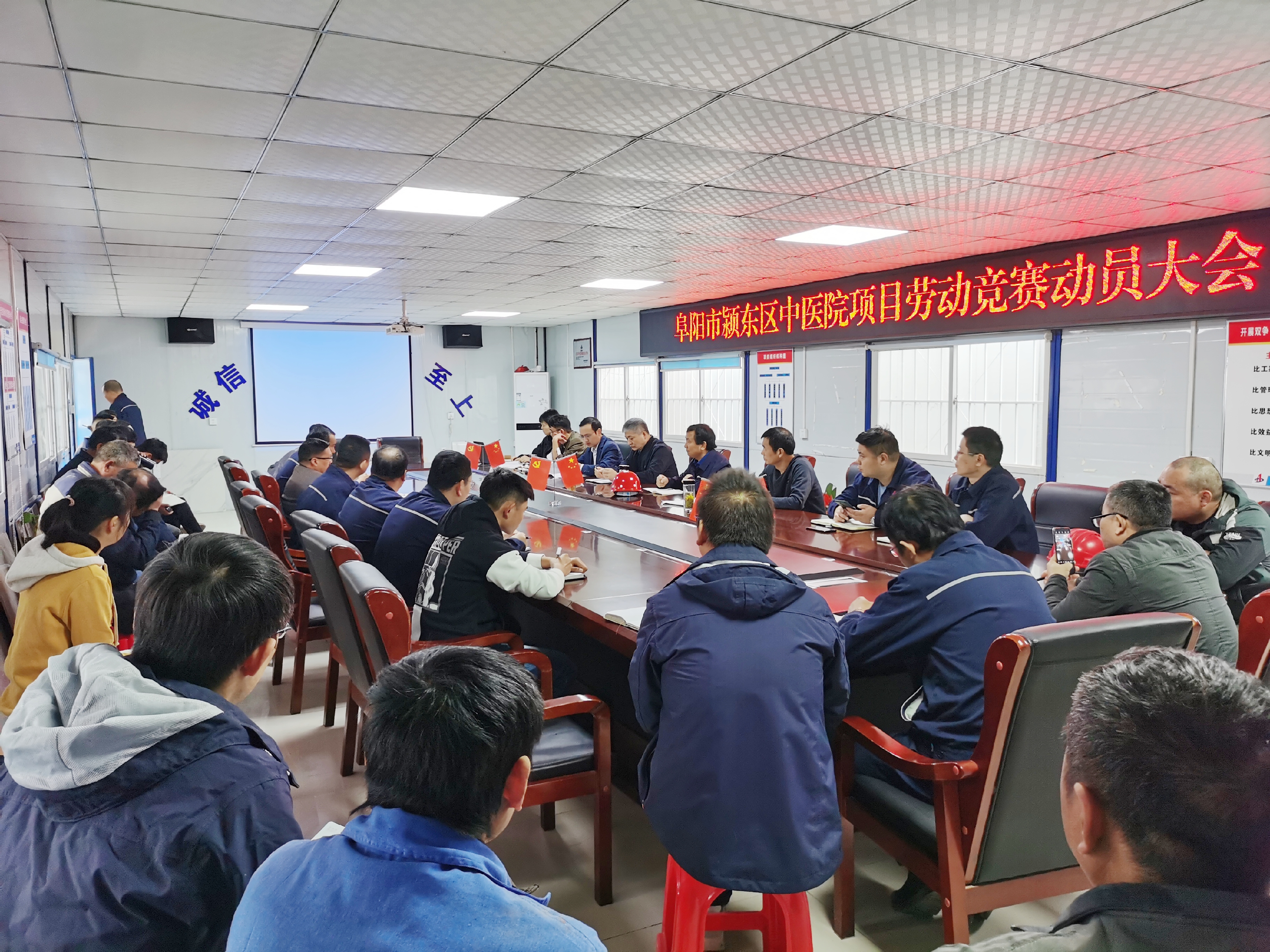 為確保年度各目標(biāo)任務(wù)順利完成,貫徹落實(shí)集團(tuán)公司開(kāi)展“戰(zhàn)疫情、搶工期、保目標(biāo)、促超產(chǎn)”為主題勞動(dòng)競(jìng)賽活動(dòng)精神,2020年11月5日上午,安徽安裝召開(kāi)阜陽(yáng)潁東區(qū)中醫(yī)院建設(shè)PPP項(xiàng)目“大干90天,確保2021年春節(jié)前二層以上工程量全部完工”勞動(dòng)競(jìng)賽動(dòng)員會(huì)。公司副總經(jīng)理高飛,紀(jì)委書記、工會(huì)主席李寬旭,總工程師吳繼成,公司相關(guān)部門負(fù)責(zé)人、項(xiàng)目管理人員和施工班組長(zhǎng)共40多人參加了競(jìng)賽動(dòng)員會(huì)。