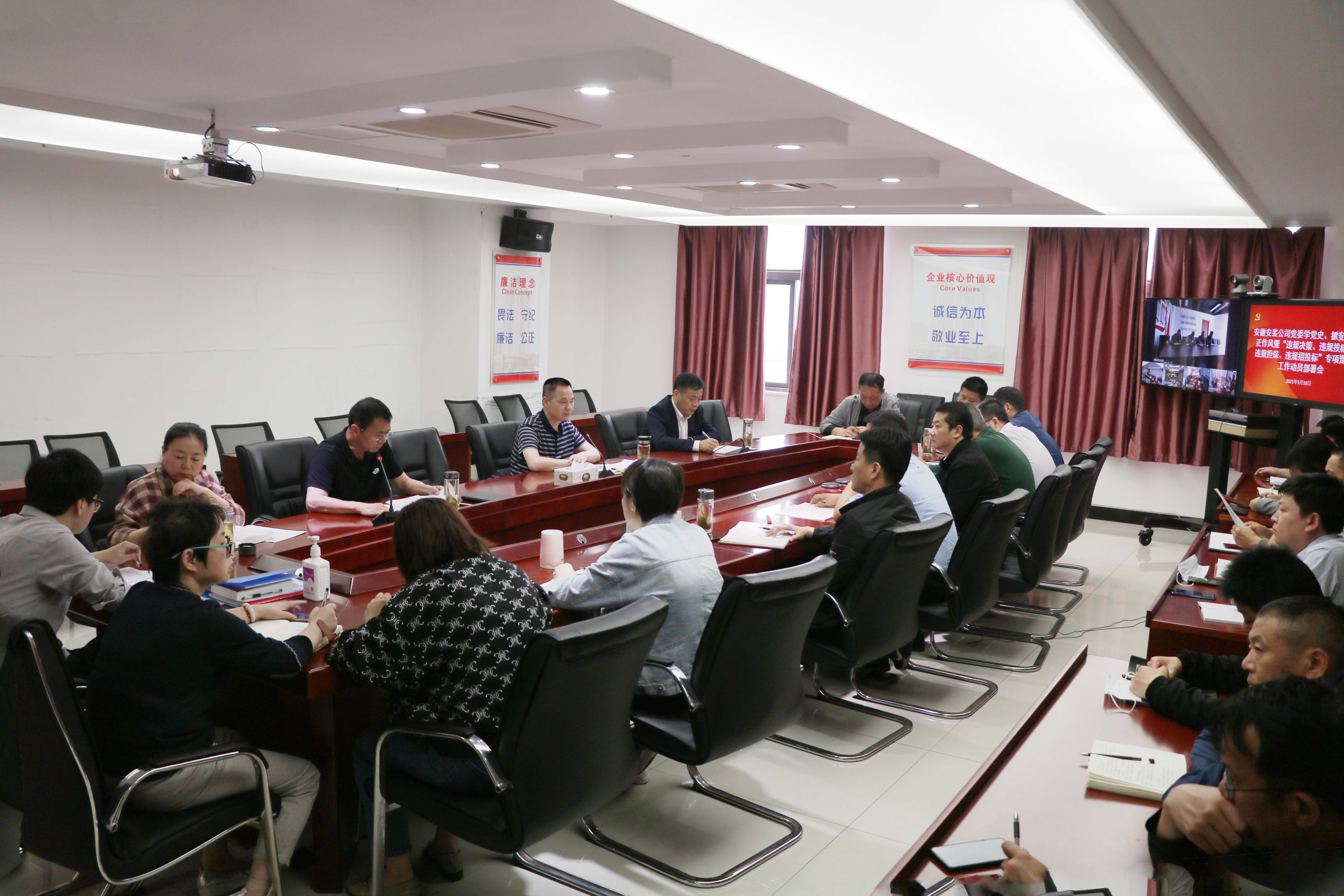 5月18日下午,安徽安裝黨委召開疫情防控專題部署會議,公司領導班子成員、機關部門負責人、所屬各分公司領導班子成員參加會議,會議以現(xiàn)場加視頻形式召開,公司黨委書記、董事長胡六中主持會議并講話。