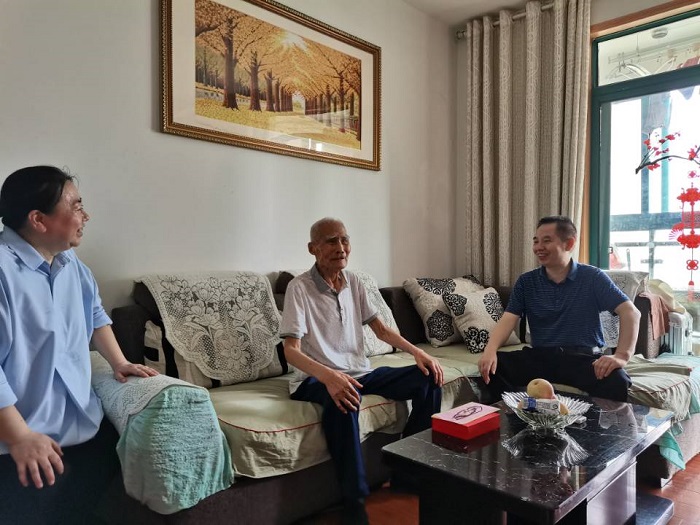 6月30日,黃代來到88歲老黨員胡桂壽家。胡桂壽1949年4月入伍,1956年5月加入中國共產(chǎn)黨,1952年參加抗美援朝戰(zhàn)爭,1965年參加抗美援越戰(zhàn)爭。黃代認(rèn)真傾聽胡老回顧他難忘的戰(zhàn)斗經(jīng)歷,一起重溫我們黨百年光輝歷程并親切詢問了胡老的家庭、生活和身體健康情況,代表集團(tuán)黨委向胡老致以誠摯問候和衷心祝福,對胡老為黨、為人民、為公司默默奉獻(xiàn),在平凡的崗位上做出的不平凡的貢獻(xiàn)表示衷心的感謝。黃代還向胡老介紹了近年來集團(tuán)公司的發(fā)展變化,希望胡老多建言獻(xiàn)策,齊心協(xié)力推動(dòng)安徽建工高質(zhì)量發(fā)展。