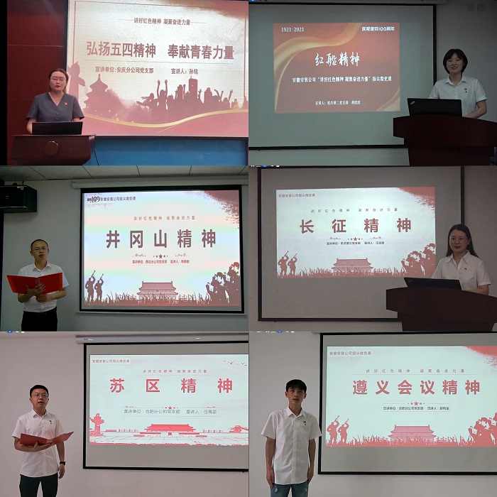 指尖微黨課課堂。為慶祝建黨100周年,促進黨史學習教育方式多樣化,讓廣大基層一線黨員尤其是青年黨員同志廣泛參與到黨史宣講中來,公司黨委依托公司官方微信公眾號重新打造安徽安裝的黨課品牌——“指尖微黨課”課堂,組織開展了“講好紅色精神 凝聚奮進力量”指尖微黨課活動。所屬各黨支部積極推薦黨員同志,尤其是基層一線的黨員同志參與到公司黨委“指尖微黨課宣講員”隊伍中來,此次指尖微黨課課堂每集時長5-8分鐘,短小簡潔且內(nèi)涵豐富,以五四精神、紅船精神、井岡山精神、延安精神、航天精神、偉大抗疫精神等人民熔鑄鍛造的偉大紅色精神為主題,講述這些紅色精神背后的感人故事,圍繞每一期紅色精神主題,主講人結合自身工作實際,談感想談體會。指尖微黨課旨在變“被動學”為“主動講”,變“集中念開會讀”為“隨時看隨地學”,解決了公司項目點多面廣,黨員分散不易集中系統(tǒng)學習的問題,現(xiàn)在只要打開手機,利用零碎時間就可以通過身邊人的宣講更直觀更生動地領略黨史中的奮進力量,切實做到“人人都是宣講員、黨課揣進口袋中”。