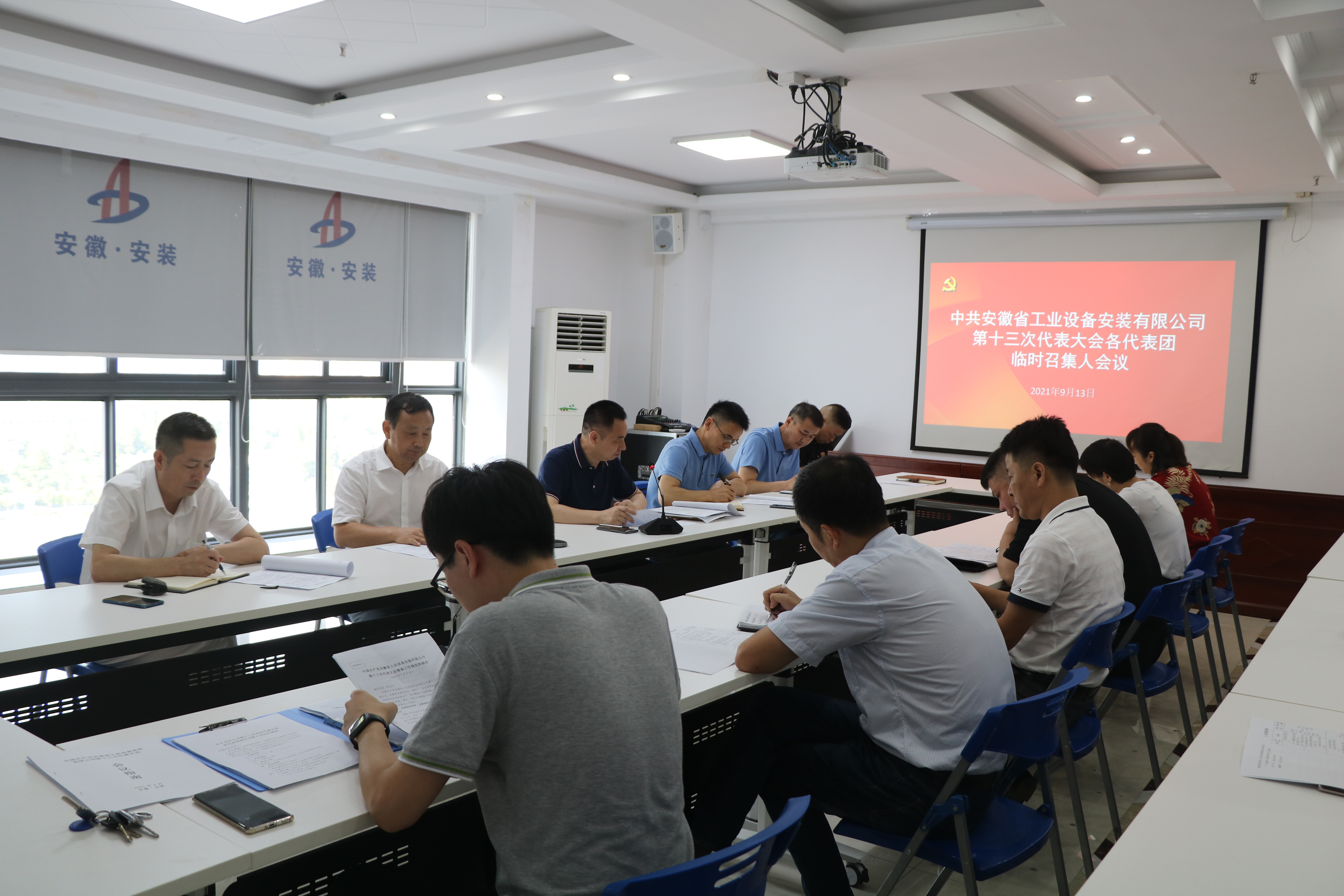 9月13日下午,安徽安裝公司召開第十三次黨代會各代表團臨時召集人會議,公司領導班子成員、各代表團臨時召集人及各工作組組長參會。黨委書記、董事長胡六中主持會議。