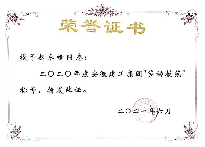 2019年3月,根據(jù)安徽安裝公司拓展市場、加快發(fā)展的工作要求,趙永峰勇挑重擔,擔負起了合肥分公司“開拓市場一片天”的重任,團結(jié)帶領(lǐng)分公司班子成員和全體員工立足新起點、整裝再出發(fā),努力為實現(xiàn)分公司新一輪大發(fā)展而不懈奮斗,取得的可喜成績得到了領(lǐng)導和員工們的一致認可和稱贊。受到安徽建工集團及安徽省工業(yè)設(shè)備安裝有限公司的表彰,在2021年7月1日-2日召開的安徽建工集團控股有限公司二屆一次職工代表大會暨“七一”表彰會上,趙永峰同志作為集團勞動模范代表光榮的上臺授獎。
