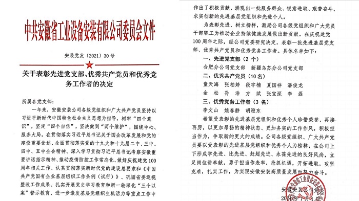 今年以來,趙永峰同志以黨史學習教育和慶祝中國共產(chǎn)黨成立100周年為契機,以集團黨建“領(lǐng)航計劃”為抓手,創(chuàng)新型開展支部黨建工作,多措并舉,勠力同心,真抓實干,積極探索項目黨建工作新載體、新途徑,以深入開展創(chuàng)先爭優(yōu)“黨員示范崗”等主題實踐活動為載體,以“我為群眾辦實事”實踐活動帶領(lǐng)支部班子成員創(chuàng)造性地開展一系列黨建工作,用實際行動踐行初心使命,用真抓實干檢驗黨史學習教育成效。積極發(fā)揮了“一名黨員就是一面旗幟,一個支部就是一座堡壘”的重要作用。他所在合肥分公司被建工集團授予“先進集體”光榮稱號,合肥分公司黨支部被安徽省工業(yè)設(shè)備安裝有限公司黨委評為“先進黨支部”。趙永峰同志榮獲安徽建工集團“勞動模范”等多項榮譽稱號。
