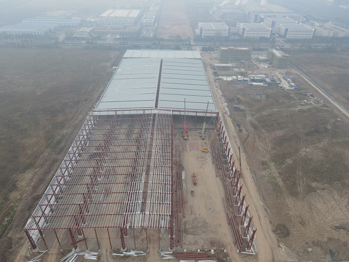 由合肥分公司承建的安徽建工智能鋼構(gòu)項(xiàng)目正在緊張施工中,現(xiàn)主體架構(gòu)已初現(xiàn)雛形。11月17日上午,項(xiàng)目部“50米跨屋面梁吊裝”工作正在進(jìn)行,公司總工程師吳繼成現(xiàn)場(chǎng)指導(dǎo)吊裝工作,并為第一榀屋面梁進(jìn)行掛紅儀式。公司總經(jīng)理助理、合肥分公司經(jīng)理、黨支部書記趙永峰,公司總工辦、安全部等相關(guān)部門負(fù)責(zé)同志參加。