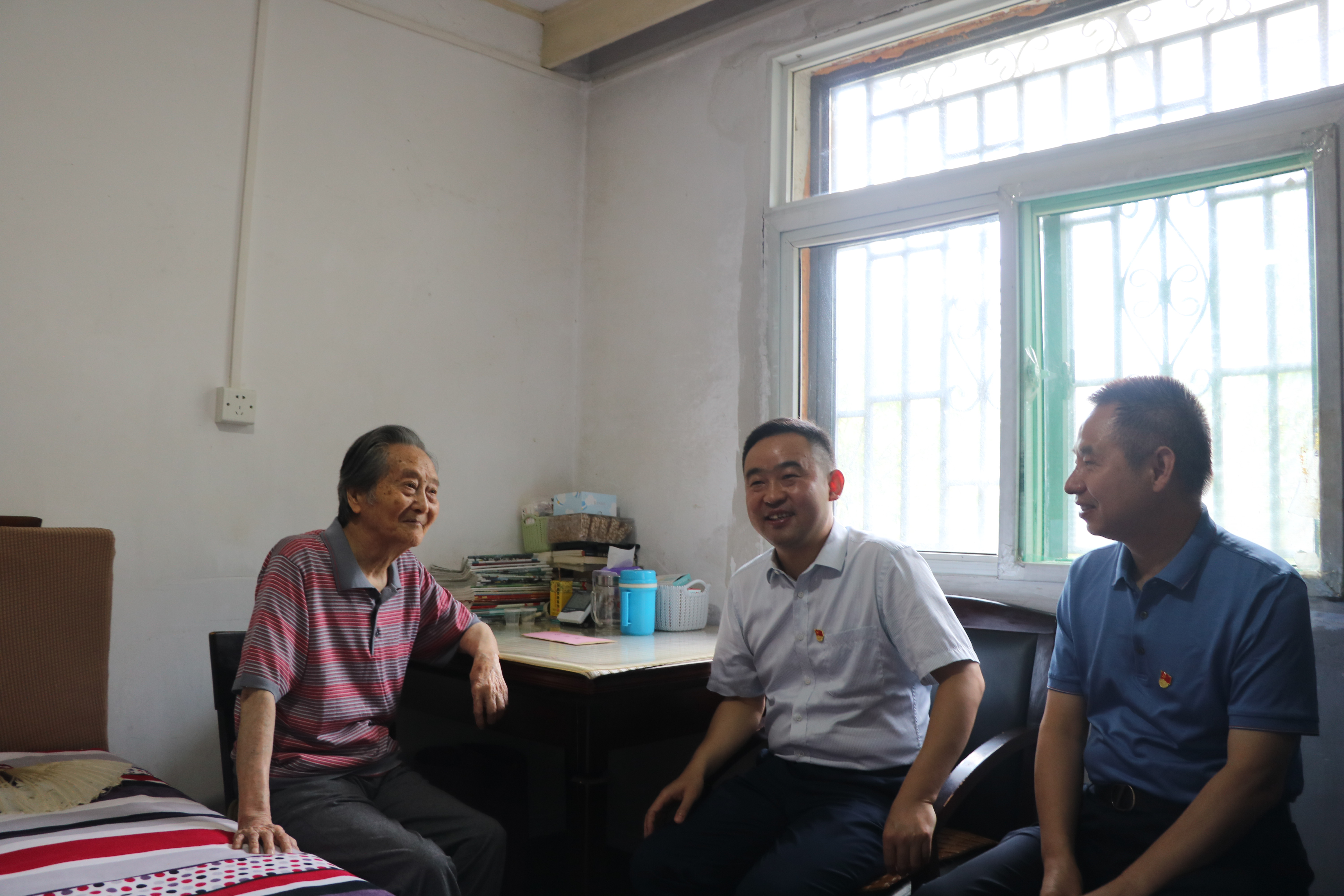 6月30日上午,黃代來到96歲老黨員陳晴家中。陳晴1926年11月出生,安徽定遠(yuǎn)人,1949年2月參加工作,1980年8月加入中國共產(chǎn)黨,兒子參加對越自衛(wèi)反擊戰(zhàn)光榮犧牲。黃代與陳老促膝交談,耐心詢問他的身體健康和家庭生活情況,感謝他為黨的事業(yè)和集團(tuán)發(fā)展作出的貢獻(xiàn),代表集團(tuán)黨委向陳老致以誠摯問候和衷心祝福。黃代還向陳老介紹了近年來集團(tuán)公司日新月異的發(fā)展變化,希望陳老能為安徽建工高質(zhì)量發(fā)展多建言獻(xiàn)策,同時(shí)叮囑安徽安裝相關(guān)部門多關(guān)心老人的生活,及時(shí)幫助解決生活上的困難。