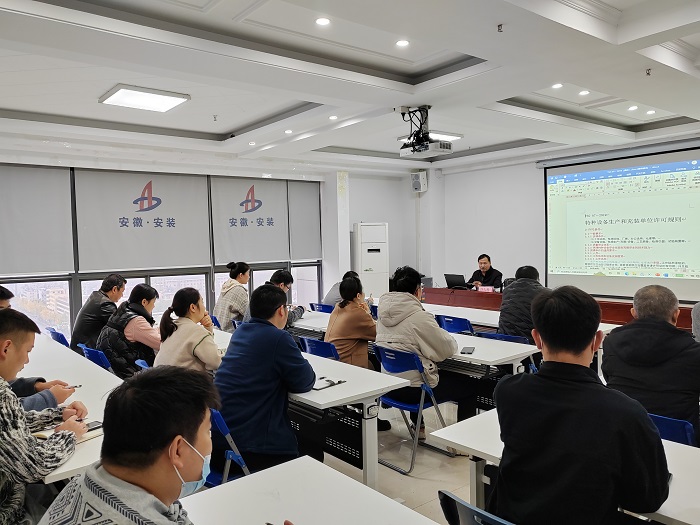 為進一步提升公司員工對特種設備許可的理解,切實做好壓力管道(GC1)許可換證迎審材料準備工作。11月22日上午,安徽安裝公司在15樓職工之家舉辦“特種設備生產和充裝單位許可規(guī)則TSG07-2019”專題學習培訓。培訓邀請了安徽省特種設備檢測院原總工、正高級工程師許久勝授課。公司機關、所屬各單位相關部門人員約50余人參加培訓。培訓以現(xiàn)場加視頻的形式召開。