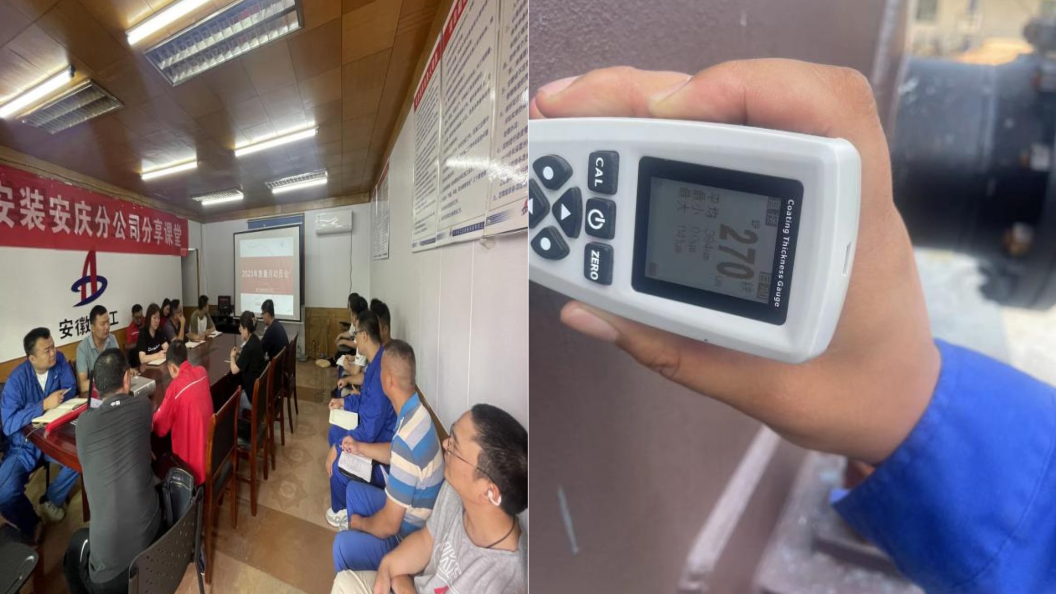安慶分公司組織機(jī)關(guān)及所屬項(xiàng)目舉行“質(zhì)量月”動(dòng)員會(huì),安慶石化循環(huán)水項(xiàng)目開(kāi)展儲(chǔ)罐防腐保溫專(zhuān)項(xiàng)檢查(檢查中間漆涂層厚度)