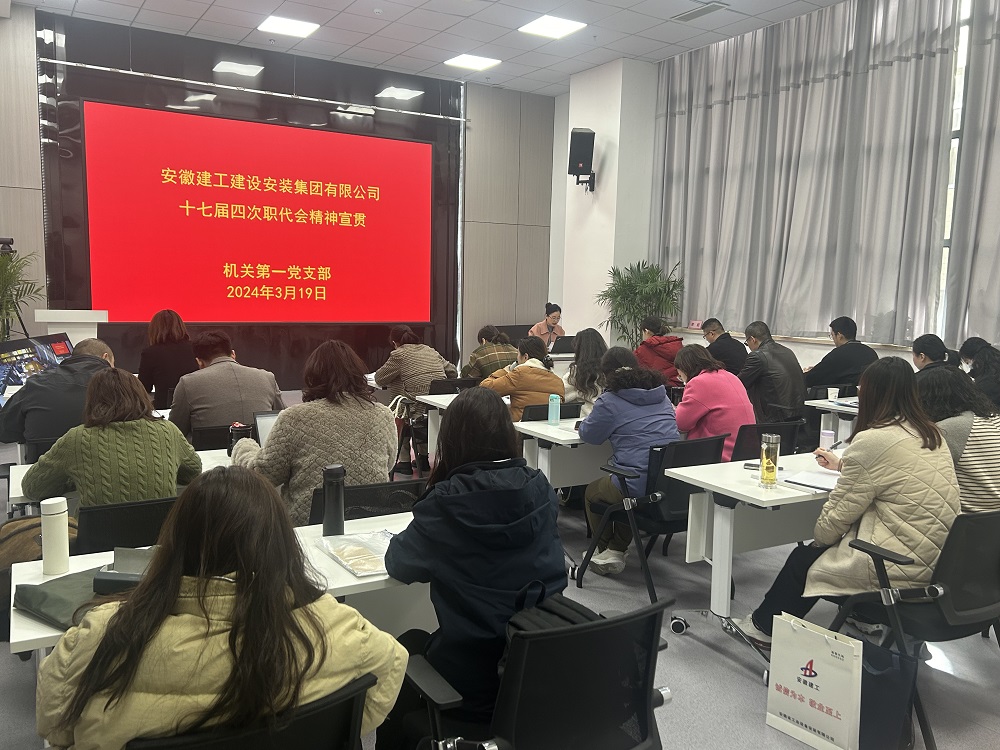為全面領(lǐng)會(huì)集團(tuán)、公司兩級(jí)職代會(huì)精神,機(jī)關(guān)第一黨支部書記余群詳細(xì)解讀了建工控股黨委書記、董事長(zhǎng)楊善斌的講話和集團(tuán)《工作報(bào)告》,并重點(diǎn)對(duì)公司黨委書記、董事長(zhǎng)胡六中的講話和《工作報(bào)告》進(jìn)行了宣貫。