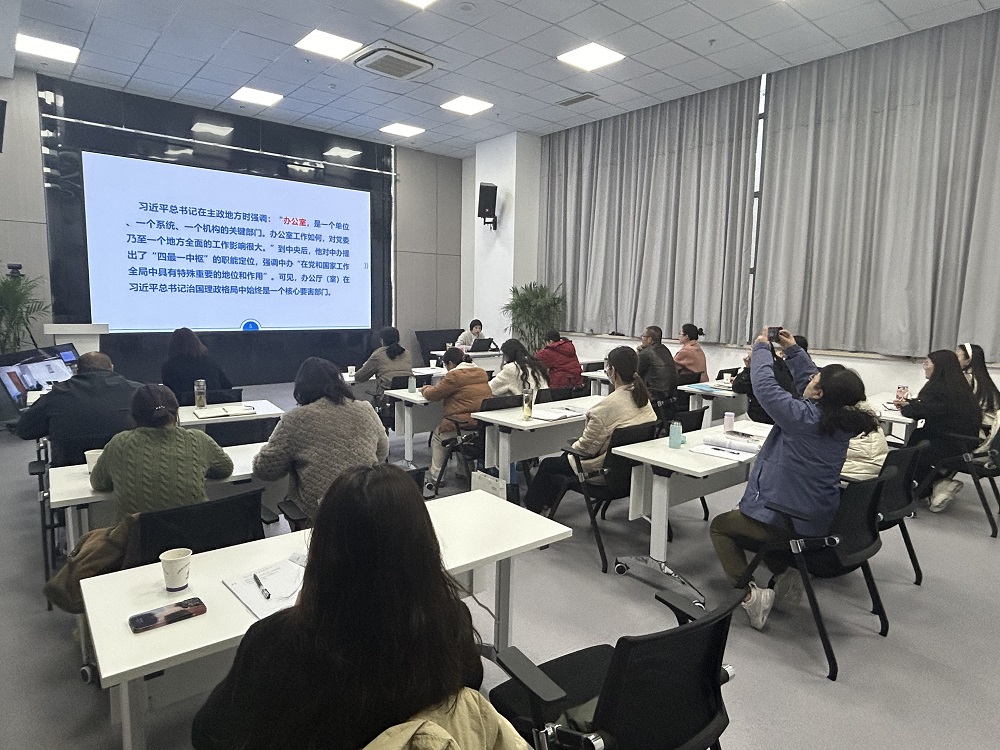 下午,綜合辦公室主任黃俊筠分別從題為《關(guān)于辦公室職能的幾點(diǎn)思考與認(rèn)識(shí)》《接待與禮儀知識(shí)》《情緒管理》三個(gè)課程充分闡述了綜合辦人員應(yīng)具備的專業(yè)能力與素養(yǎng),并結(jié)合實(shí)際案例詳細(xì)分析綜合業(yè)務(wù)管理工作的關(guān)鍵要點(diǎn),同時(shí)對(duì)各單位綜合管理工作提出了更高的要求。
