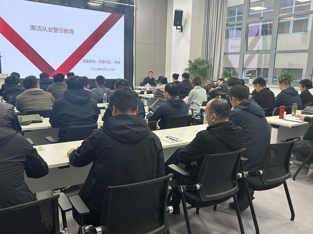 為進一步增強項目經(jīng)理廉潔從業(yè)意識,教育和引導(dǎo)項目經(jīng)理正確行使手中的權(quán)力,3月28日下午,建工安裝紀(jì)委在公司項目經(jīng)理年度培訓(xùn)會議上對項目經(jīng)理開展了廉潔從業(yè)集體談話。公司紀(jì)委書記李楊作了講話,項目經(jīng)理、核算員80人參加。