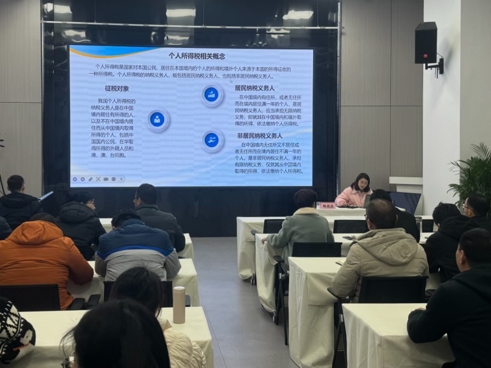 本次培訓旨在介紹與每位員工息息相關的個人所得稅業(yè)務知識。陳晶晶詳細闡述了個人所得稅的概念、征稅范圍、稅率、計算方法、專項附加扣除及匯算清繳等相關知識,會上宣貫了“財政部、稅務總局關于在全國范圍實施個人養(yǎng)老金個人所得稅優(yōu)惠政策的公告”(財政部、稅務總局公告2024年第21號),重點對個人專項附加扣除常見問題進行了講解。
