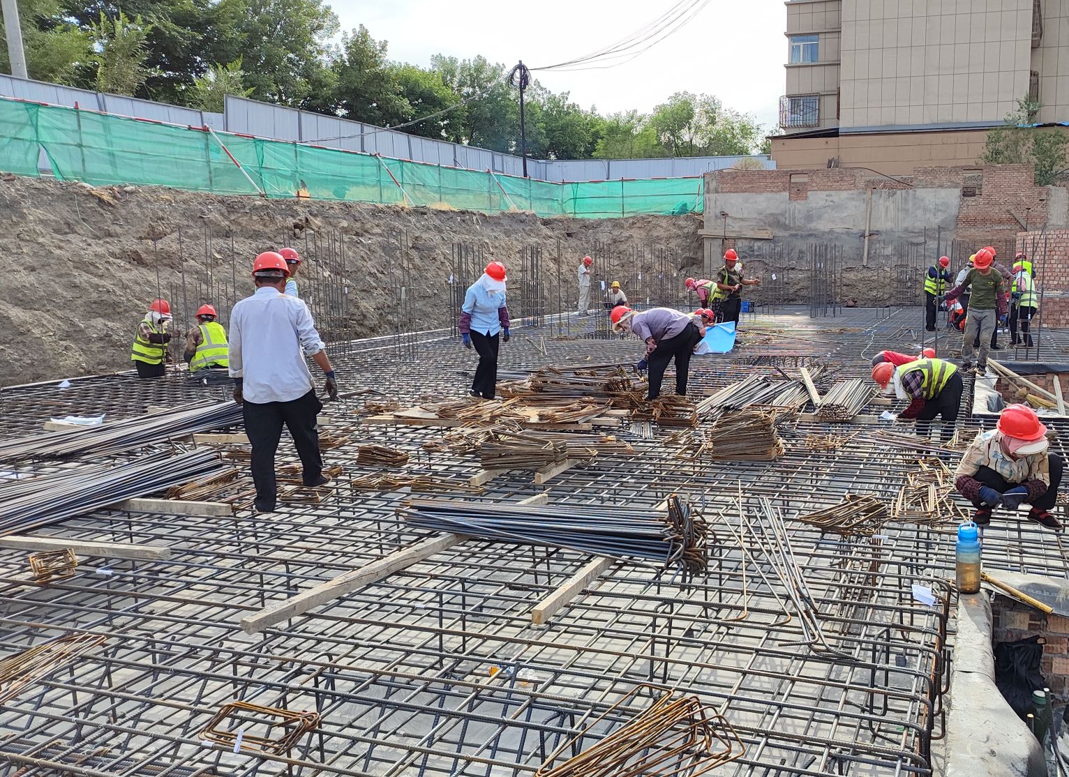 盛夏七月,熱浪襲人,建工安裝新疆烏蘇南苑項(xiàng)目部全體成員鉚足干勁、火力全開(kāi),奮戰(zhàn)在項(xiàng)目一線。該項(xiàng)目新建兩棟主樓,目前處于筏板基礎(chǔ)鋼筋綁扎。