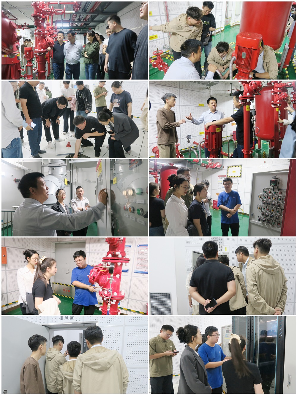 此次觀摩采取“現(xiàn)場看、聽匯報、議亮點、找差距”的方式,先后深入項目雨水泵房、消防泵房、配電房等觀摩點。每到一處,觀摩人員均認真聽取項目負責(zé)人關(guān)于項目建設(shè)、工藝創(chuàng)新、安全生產(chǎn)及成果轉(zhuǎn)化等方面的匯報,詳細詢問項目推進中的難點堵點,并圍繞施工流程優(yōu)化、成本管控、質(zhì)量把關(guān)等關(guān)鍵環(huán)節(jié)展開交流探討。其中,項目的BIM技術(shù)及智慧建筑技術(shù)應(yīng)用、綜合管線布置、設(shè)備接地、泵體接地、橋架內(nèi)線纜敷設(shè)等創(chuàng)新做法成為現(xiàn)場交流的焦點,參觀人員紛紛拍照記錄、駐足研討。