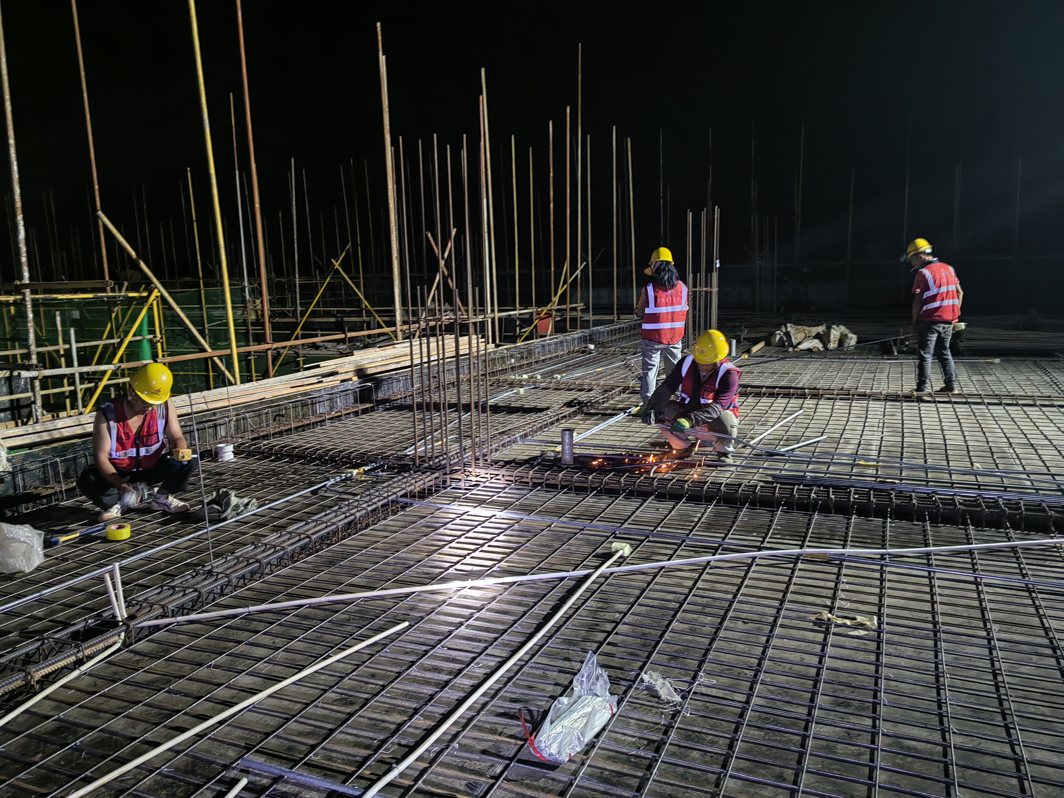 工人加班加點進(jìn)行水電線管布置