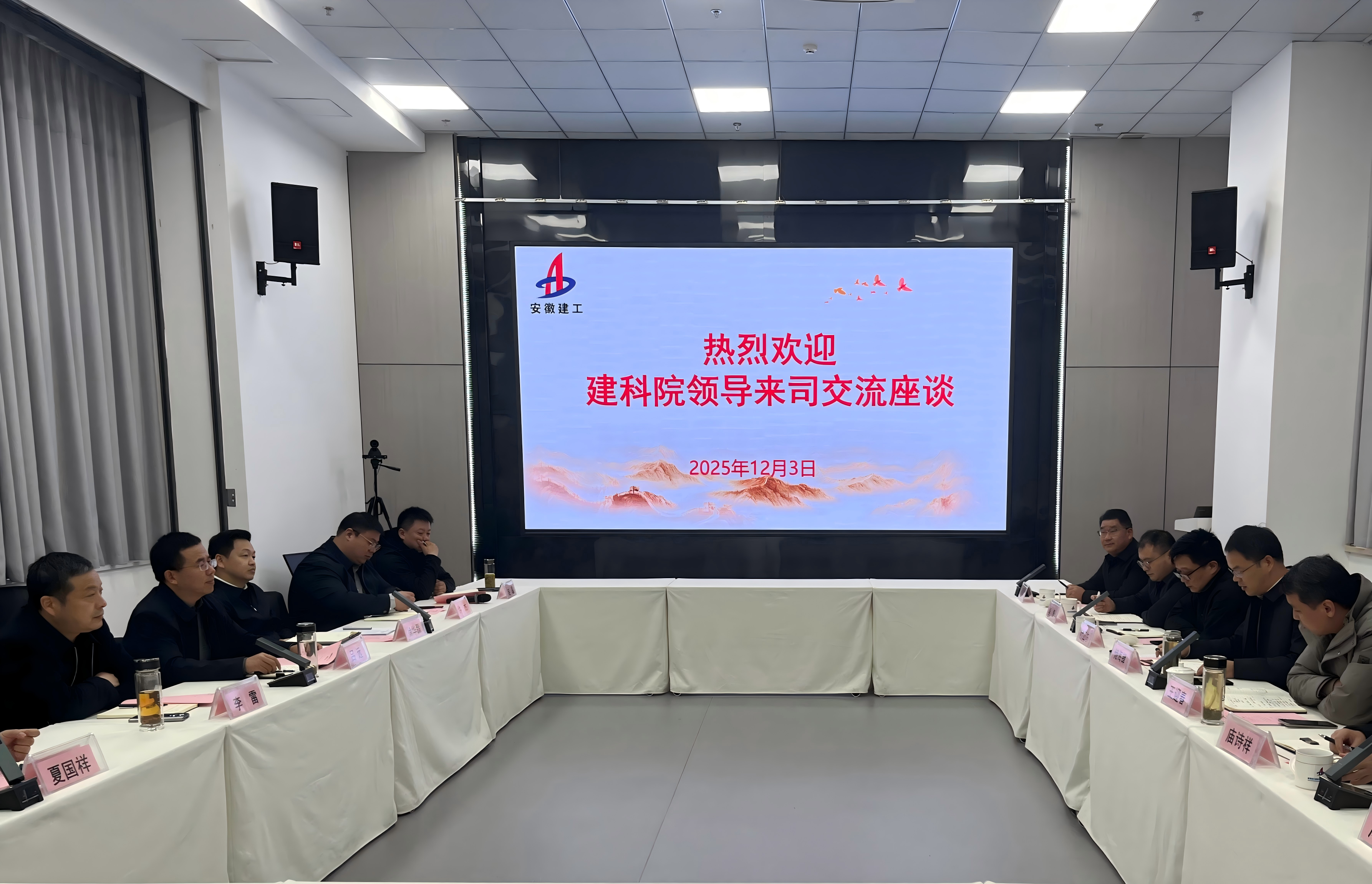 安徽建科市政分院院長葉正東、建筑分院院長王迎春,建工安裝黨委委員、副總經(jīng)理徐華磊,黨委委員、財(cái)務(wù)總監(jiān)李雷及相關(guān)部門負(fù)責(zé)人參加座談交流。